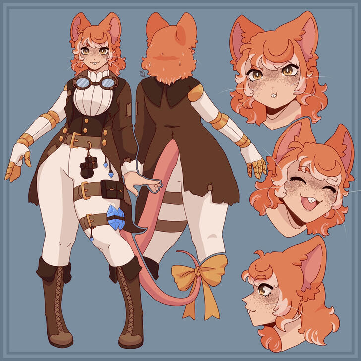 A character design conducted by the commissioner. You provide a synopsis of the character and your vision, I provide some concepts, and the finalized design will be delivered through a back-and-front reference sheet.